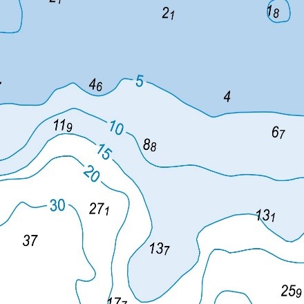 تفيد مخططات مسح الأعماق في مجال الملاحة لدعم سلامة السفن وعدم تعرضها لحوادث أثناء الإبحار، حيث تظهر الأعماق على خرائط الملاحة البحرية على شكل خطوط نسبة تسمى خطوط الأعماق أو الخطوط متساوية العمق.
