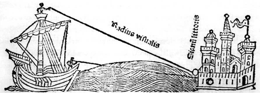 إذا افترضنا أن هوائي الرادار لسفينة ما والتي تتمركز فوق غرفة القيادة على ارتفاع 15 متر فوق سطح البحر، وهي من نوع بعيد المدى في وضع طبيعي فسيغطي مسافة 177.7 كم، وهذا مستحيل على الأرض الكروية، حيث أن الهدف المرصود على هذه المسافة يجب أن يكون على ارتفاع 2107.3 متر حتى يُرصد من قِبل هوائي الرادار!