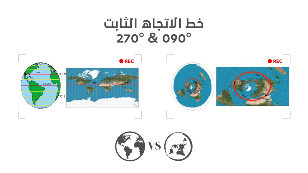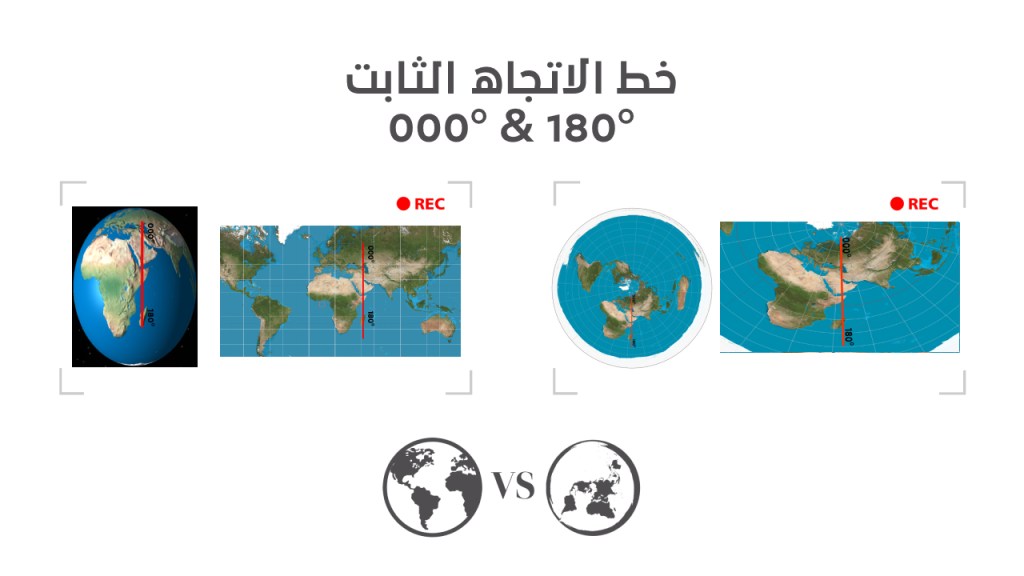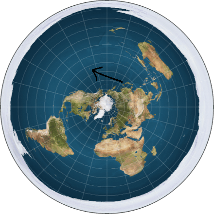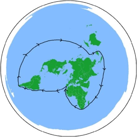 يعتقد الكرويون أنك إذا اتجهت غربًا فإن حدود الأرض المسطحة تنتهي بنهاية حدود الخريطة! والحقيقة أن هذه الإسقاط ابتُكر لتقسيم الدوّل زمنيًا، ولا علاقة له بحقيقة الأرض المسطحة نهائيًا.