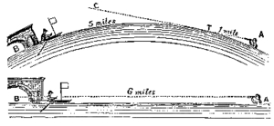 لو كانت الأرض كرة محيطها (25,000 ميل) 40,075 كم؛ فإن هذه القناة ذات الـ 10 كم ستُكوِّن قوسًا ارتفاعه بالضبط 6 أقدام في وسطه، وبالتالي فإن القارب والعلم يجب أن يختفيا في النهاية، في حين أن القارب والعلم بأكمله بقيا واضحين على نفس الارتفاع طوال الرحلة.