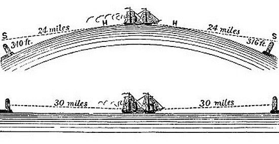 لابد من التأكيد على أن المشاهدة والتجربة أثبتت أن سطح الماء لا ينحني، والجدير بالذكر أن الماء يمثل أكثر من 70% من مساحة الأرض، وعليه فإن الأرض مسطحة.