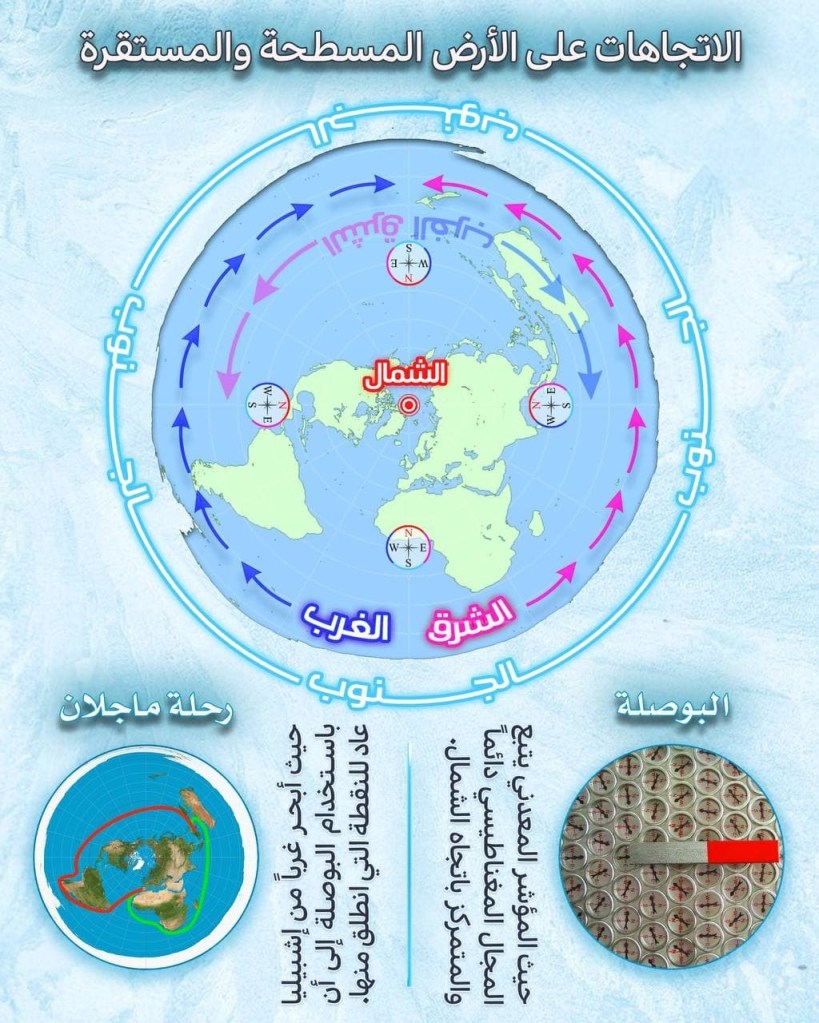 فلو أنك سرت بسفينة مهيئة واعتمدت نقطة الشمال وسرت مع مسار الشمس متجهًا نحو الشرق أو نحو الغرب فستعود لنفس النقطة بعد عدة أشهر.
